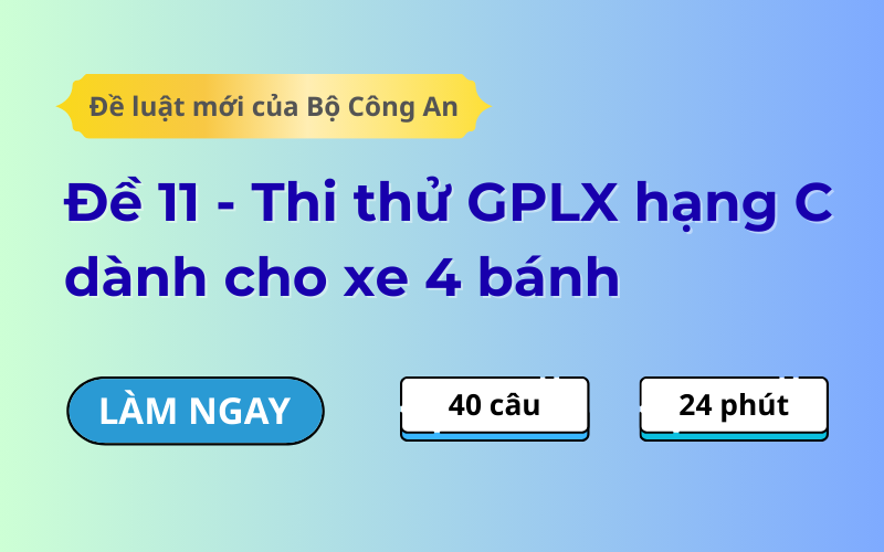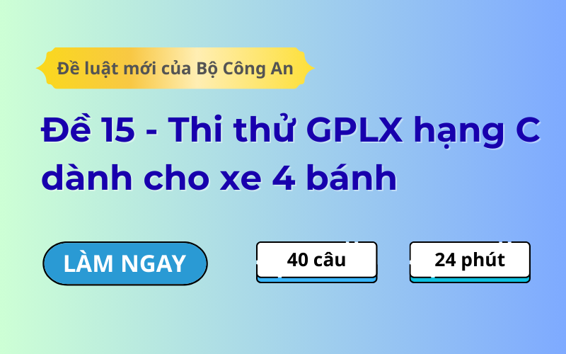 Đây là phần thi thử lý thuyết dành cho giấy phép lái xe ô tô 4 bánh hạng C, được cập nhật theo bộ luật giao thông mới năm 2025. Bộ đề giúp bạn làm quen với cấu trúc câu hỏi chuẩn, củng cố kiến thức luật giao thông, rèn luyện tốc độ làm bài và chuẩn bị tốt cho kỳ sát hạch chính thức.