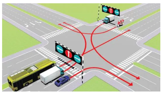 Câu hỏi 25: Theo hướng mũi tên, xe nào chấp hành đúng quy tắc giao thông?