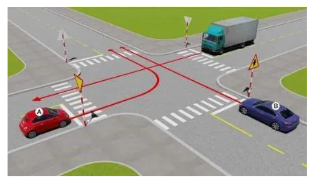 Câu hỏi 26: Theo hướng mũi tên, xe nào được quyền đi trước?