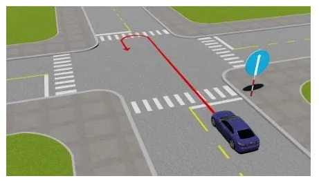 Câu hỏi 27: Xe ô tô con đi theo chiều mũi tên có vi phạm quy tắc giao thông không?