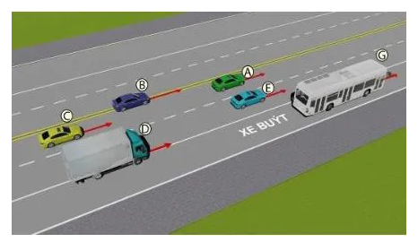 Câu hỏi 29: Trong hình dưới, những xe nào vi phạm quy tắc giao thông?