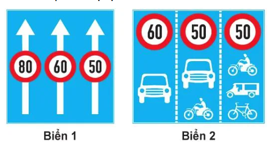 Câu hỏi 22: Biển nào báo hiệu các phương tiện phải đi đúng làn đường quy định và tuân thủ tốc độ tối đa cho phép?