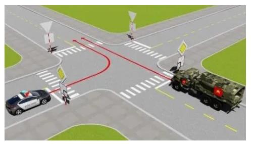 Câu hỏi 28: Xe nào phải nhường đường là đúng quy tắc giao thông?
