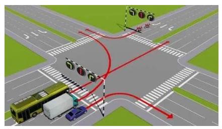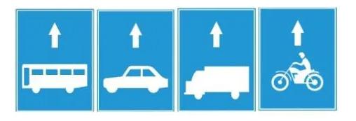 Câu hỏi 24: Tại đoạn đường có biển Làn đường dành riêng cho từng loại xe dưới đây, các phương tiện có được phép chuyển sang làn khác để đi theo hành trình mong muốn khi đến gần nơi đường bộ giao nhau hay không?